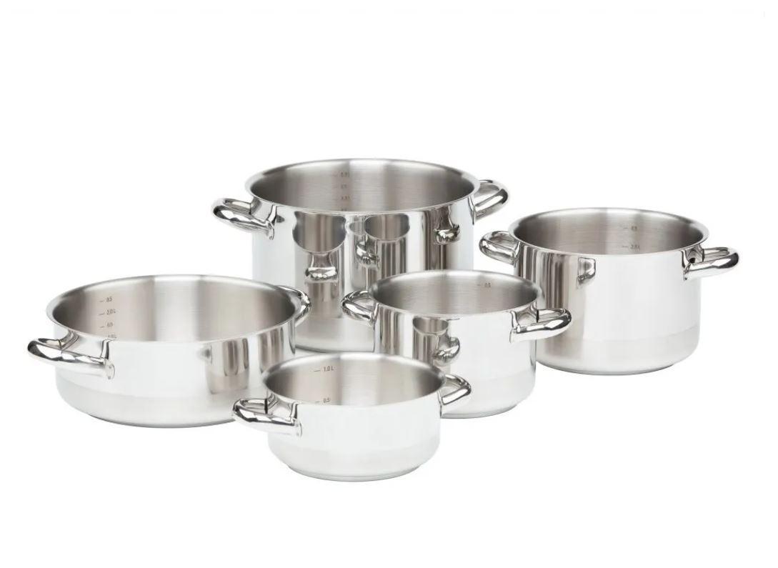 Poctivá sada 3 hrnců a 2 rendlíků řady KLASIK s nerezovými poklicemi pro spolehlivý základ kuchyně.